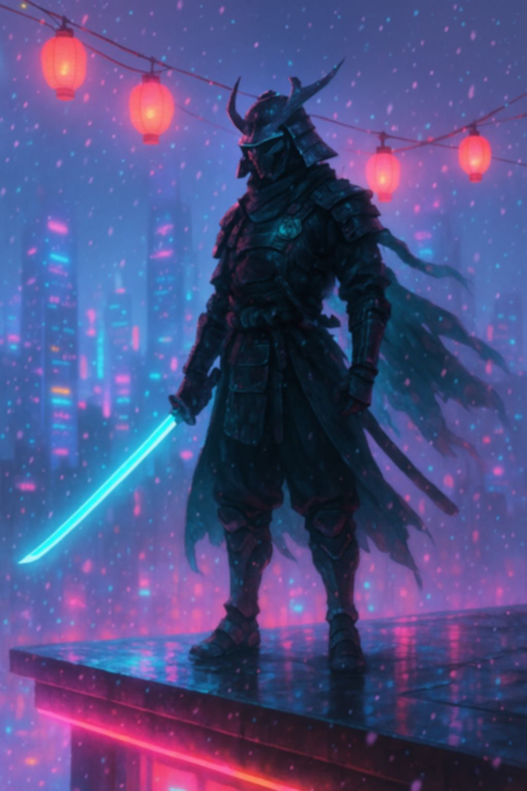 Futuristic Christmas wallpapers that trade village streets for neon runways, sci-fi towers, and glowing cables in the snow. Think cyberpunk tinsel, armored wanderers, and multicolored mist—bold backdrops for anyone who wants holiday energy with a high-tech, synthwave-inspired twist.